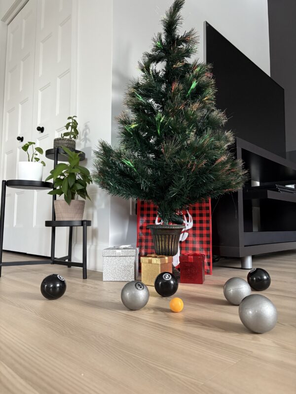 Grâce aux boules en PVC transformez votre salon en véritable terrain de pétanque.